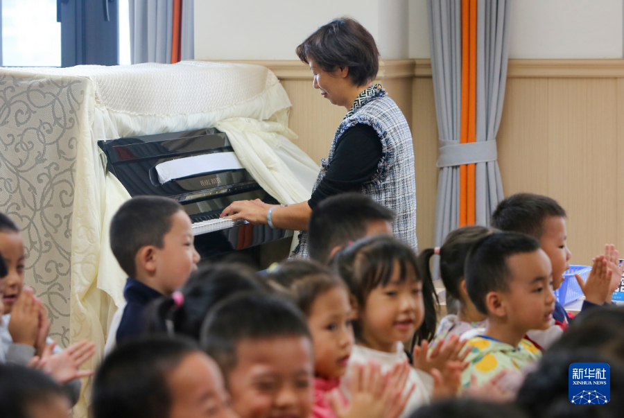在云南省昆明市西山区前卫幼儿园,老师为小朋友们进行钢琴伴奏(9月6日摄)。新华社记者 崔文 摄