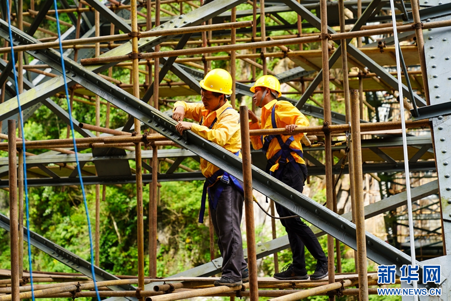 架设在悬崖峭壁间的人字桥(摄于9月6日)。新华网发(杨紫轩 摄)