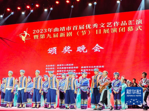 这是曲靖市2023年首届优秀文艺作品汇演暨第九届新剧(节)目展演闭幕式现场。