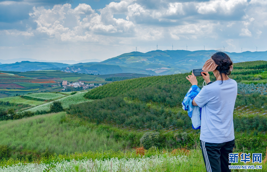 到东川红土地打卡的游客(9月9日摄)。新华网发(郑益 摄)
