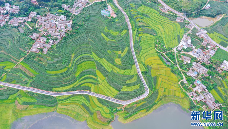 航拍庆丰湖(视频截图)。新华网发(牟定县融媒体中心供图)