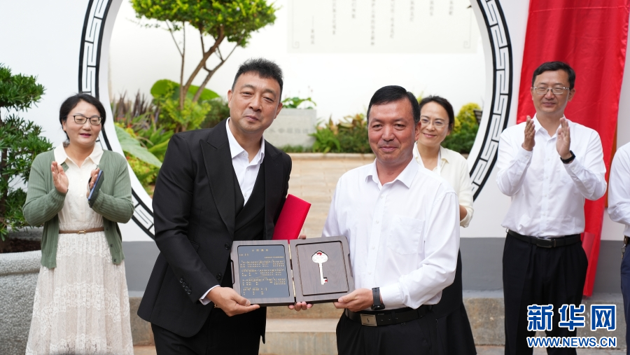 弥渡黄绍成文化小院揭牌仪式现场,赠送“弥渡县荣誉县民钥匙”(10月1日摄)。新华网发(刘云 摄)