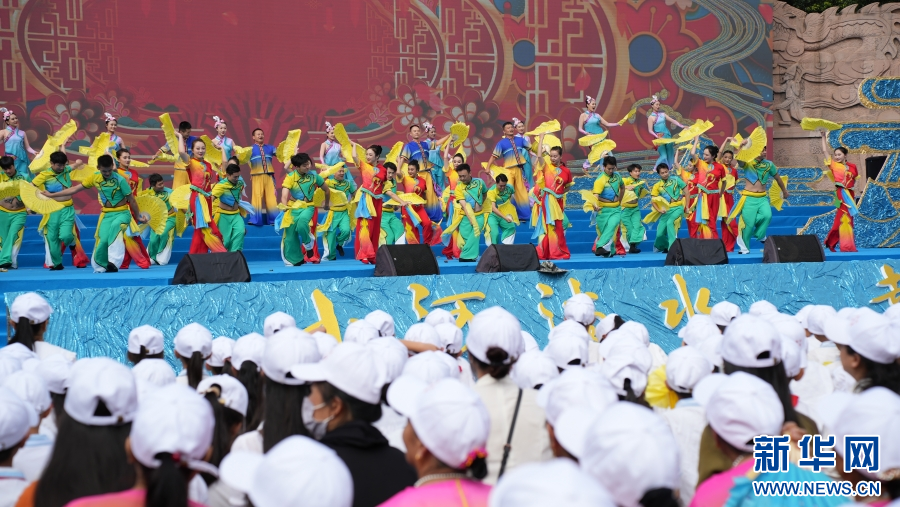 开幕式现场,民歌、花灯节目轮番上演(10月1日摄)。新华网发(刘云 摄)