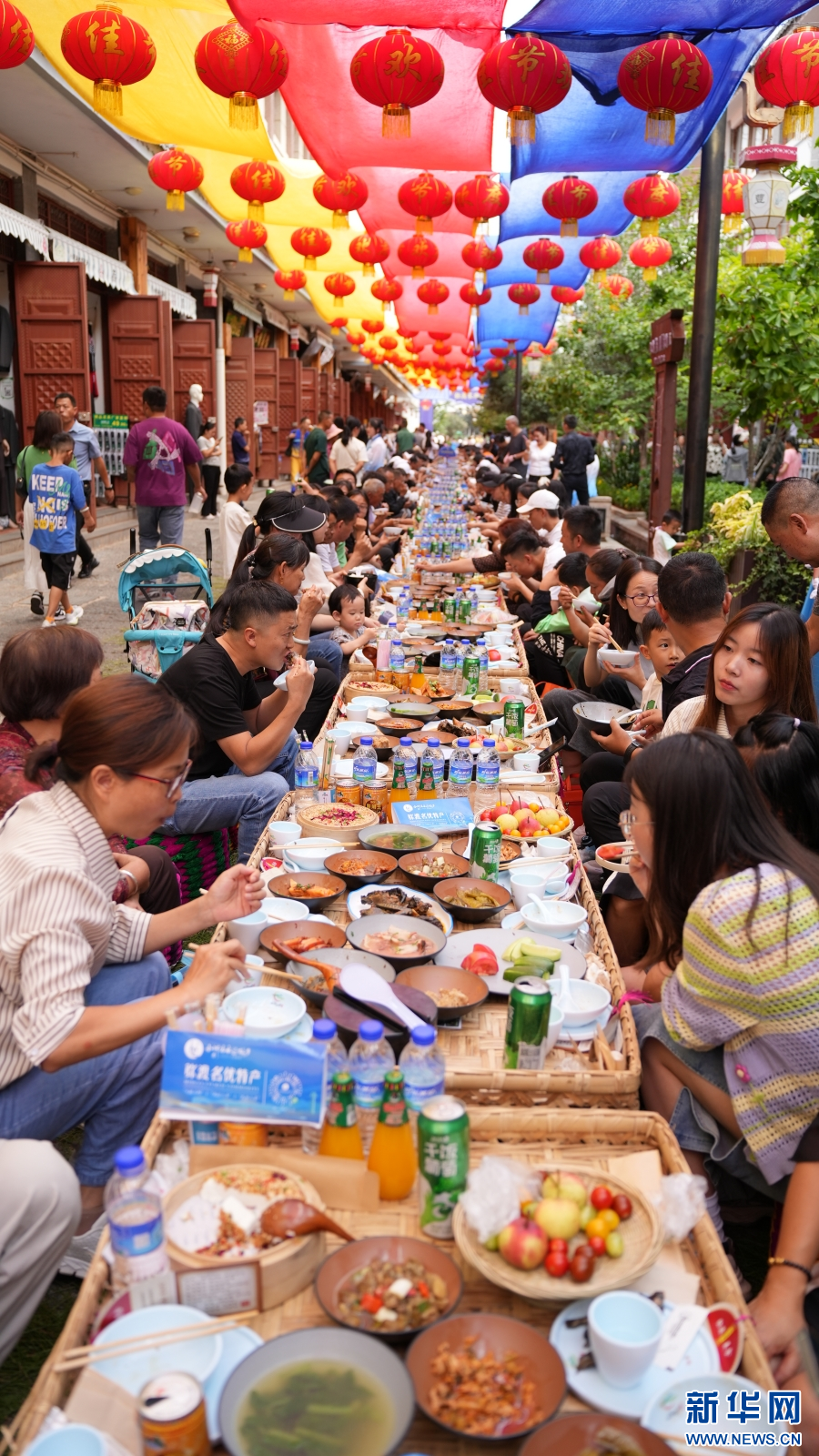 “弥渡宴”长街宴品鉴活动沿街开摆(10月1日摄)。新华网发(刘云 摄)