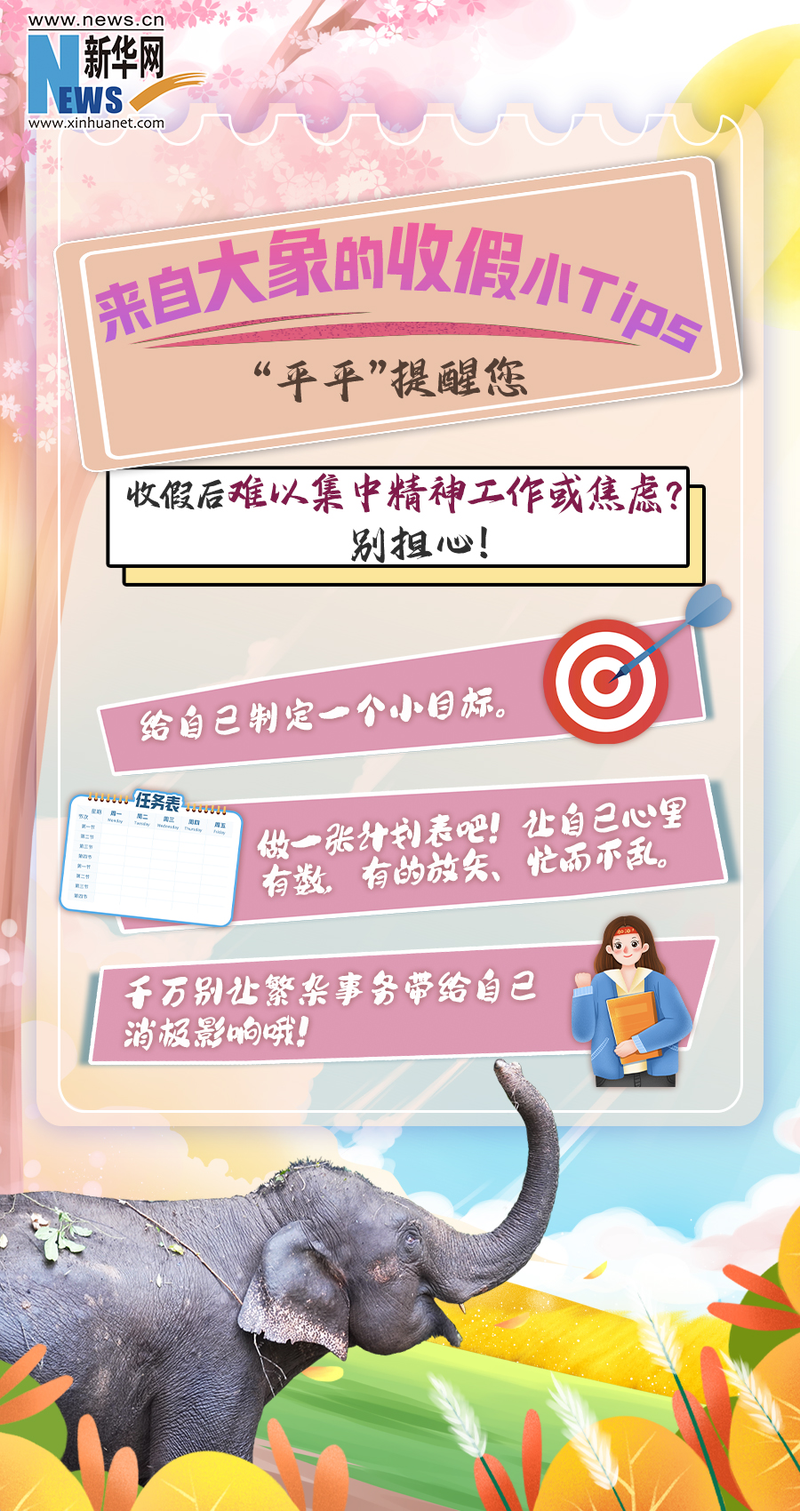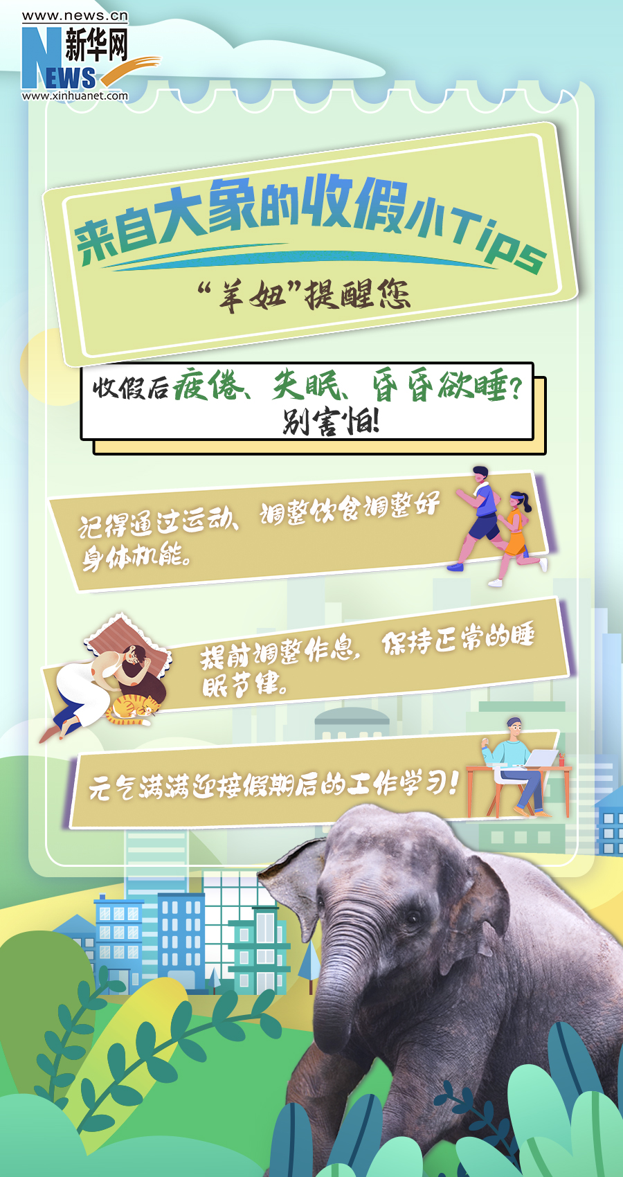 转眼间中秋、国庆“双节”假期已接近尾声,返乡之行、出游之旅也即将结束,你是否已经准备好迎接收假后的生活?请收好这份来自大象的收假小Tips,教你如何应对假期综合征的同时,也希望大家都能平安返程哦!(完)