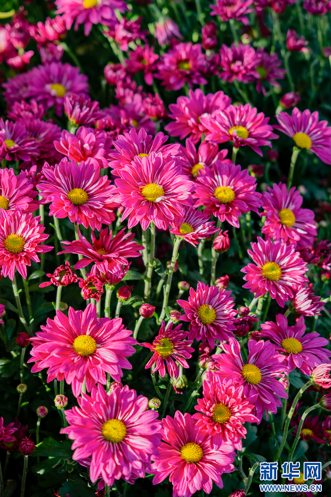 各色菊花竞相绽放(10月2日)。新华网发(郑益 摄)