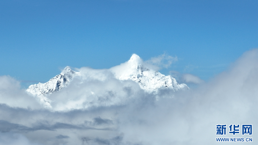 10月11日上午9时许,摄影师记录下梅里雪山和白马雪山的云海绕山的美景。在镜头中,皑皑白雪覆盖在山巅,洁白的云彩环绕四周,与背后湛蓝的天空相得益彰,构成一幅独特而静谧的画卷,让人仿佛置身仙境。(完)(李春雷 扎史江初 白马吉层)