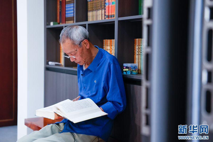 难得的休息时间,李伯藩在翻阅中医方面的书籍(摄于7月11日)。新华网 赵普凡 摄