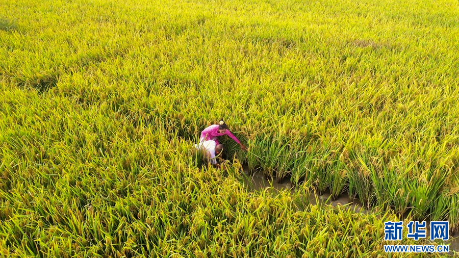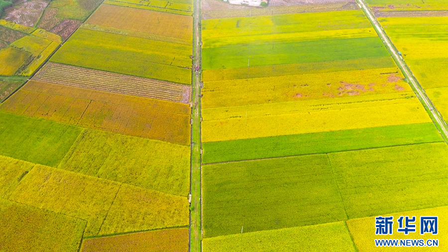 稻花鱼养殖基地稻田航拍(10月5日摄)。新华网发(尹兴朋 摄)