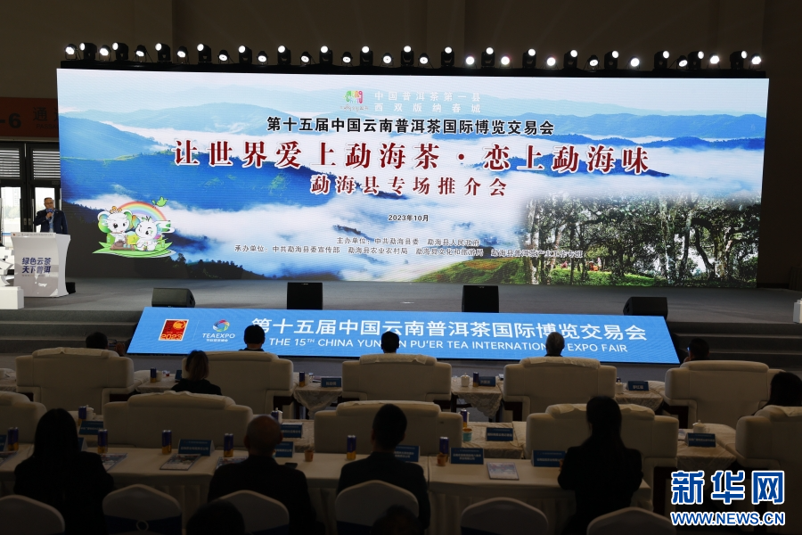14日下午,以“让世界爱上勐海茶·恋上勐海味”为主题的第十五届中国云南普洱茶国际博览交易会勐海县专场推介会在昆明滇池国际会展中心举行,活动旨在进一步宣传推介“勐海茶”,提升“勐海茶”区域公共品牌优势的知名度和影响力,搭建茶叶产销对接平台,拓宽茶叶销售渠道,加强茶产业交流与合作,促进勐海县茶产业高质量发展。