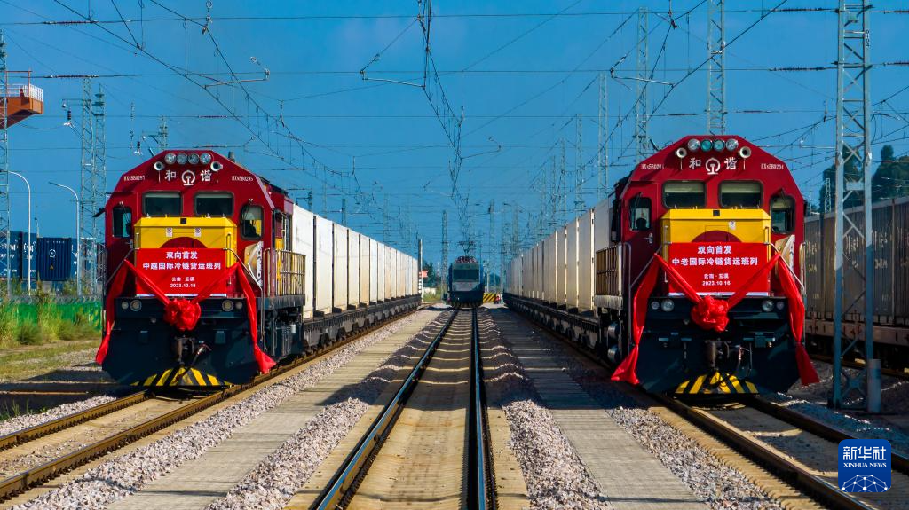 当日上午,两列满载着云南特色果蔬的冷链班列,同时从云南省玉溪市研和站驶出,1天后将分别抵达老挝万象和越南老街,这标志着中老、中越铁路国际冷链货运班列正式开通运营。