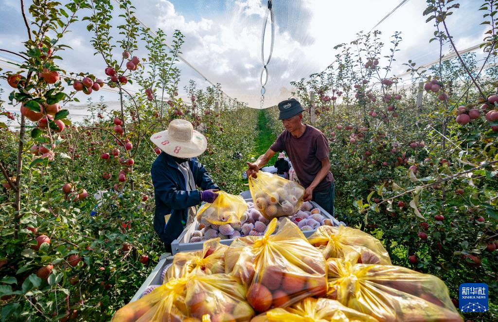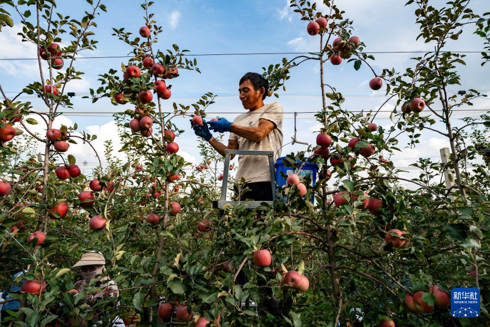 10月30日,果农在昭通市一处苹果基地内采摘苹果。新华社记者 陈欣波 摄