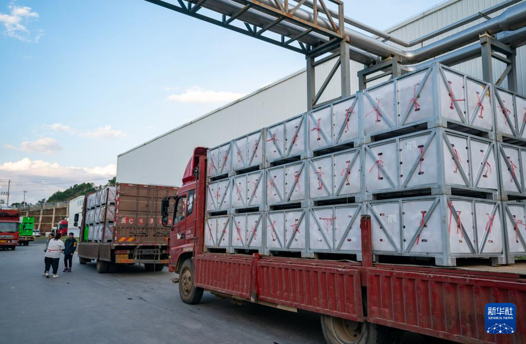 10月30日,卡车将刚采摘的苹果运输至昭通市一家苹果企业分拣。新华社记者 陈欣波 摄