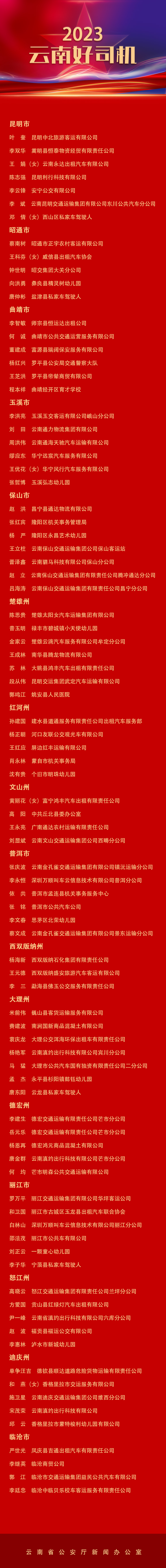 2023“云南好司机”名单。新华网发(云南省公安厅新闻办公室 供图)