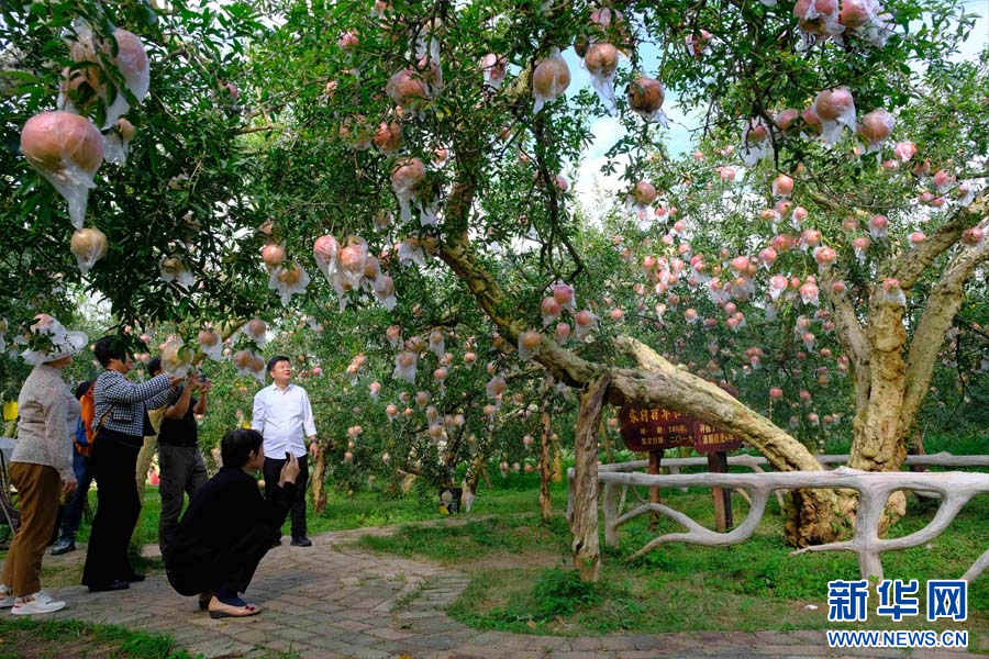 游人参观古树石榴园。(10月26日摄)。新华网发(张珏 摄)