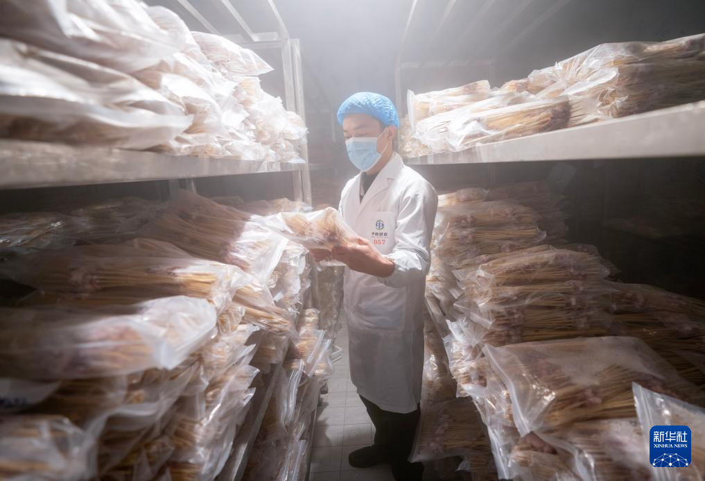 11月3日,工作人员在昭通市昭阳区中新慧农供应链小肉串中央工厂冷藏库里查看小肉串。新华社记者 陈欣波 摄