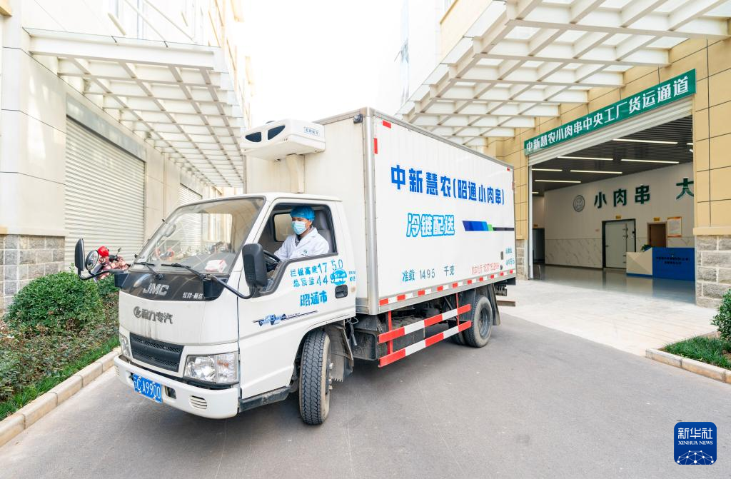11月3日,在昭通市昭阳区中新慧农供应链小肉串中央工厂,工作人员驾驶冷链车运输小肉串。新华社记者 陈欣波 摄