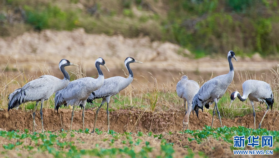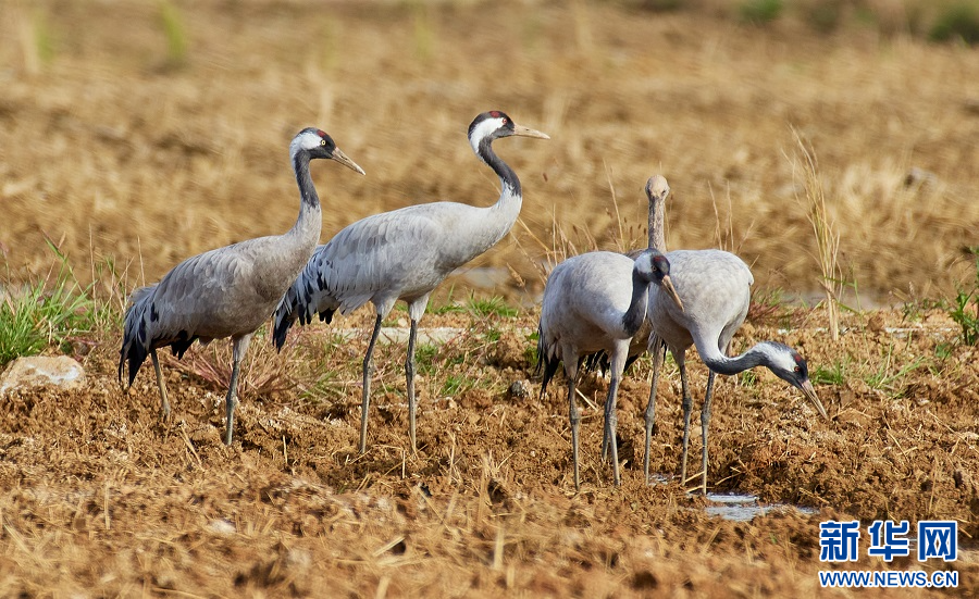 在田野里的灰鹤(11月15日摄)。新华网发(郭康 摄)
