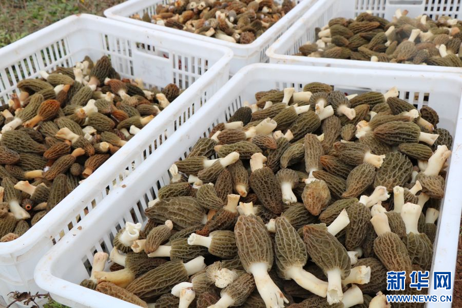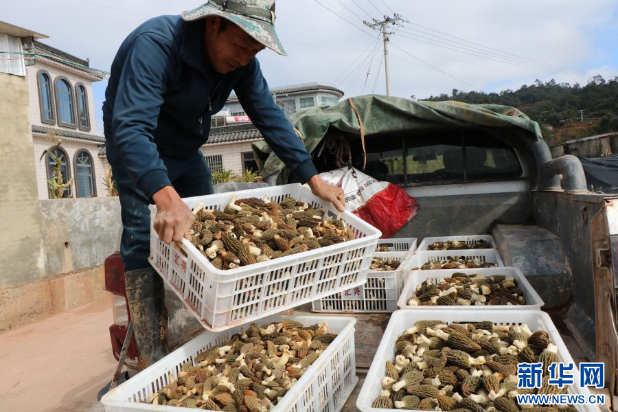 准备运往云南木水花野生菌交易中心的羊肚菌(11月20日摄)。新华网发(南华县融媒体中心供图)