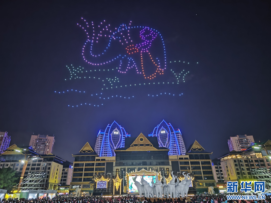 景洪市大象国际文化旅游节开幕式现场的无人机秀(11月11日摄)。新华网发(和润仙 摄)