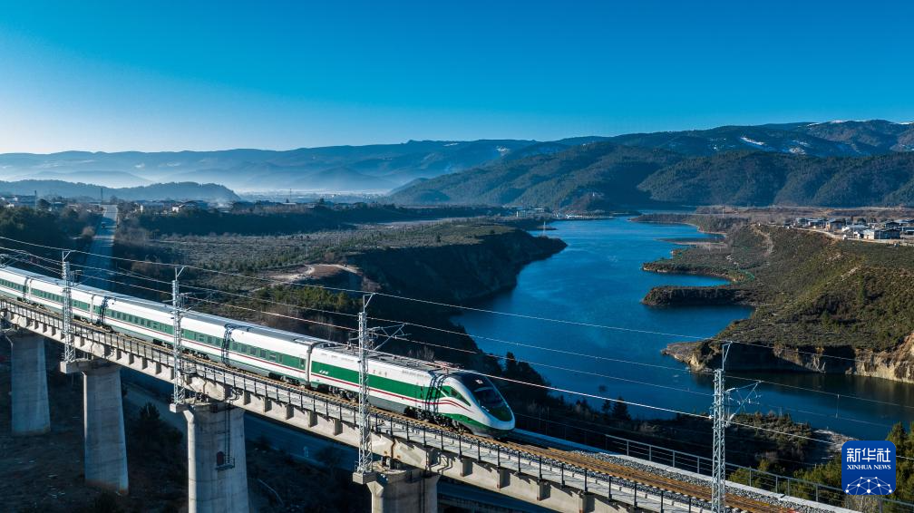 11月26日,列车驶过虎跳峡金沙江铁路大桥。
