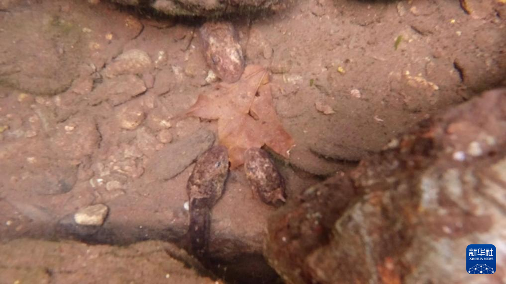走进密林,在清澈的小水潭里,记者拍摄到了密棘髭蟾的身影。只见它体长50至60毫米,眼球上半边为蓝白色,背部皮肤有很多小痣粒,上唇周边有密集的黑色锥状的角刺。