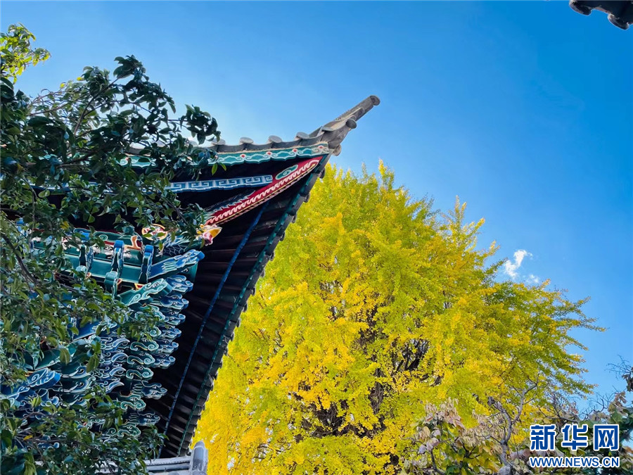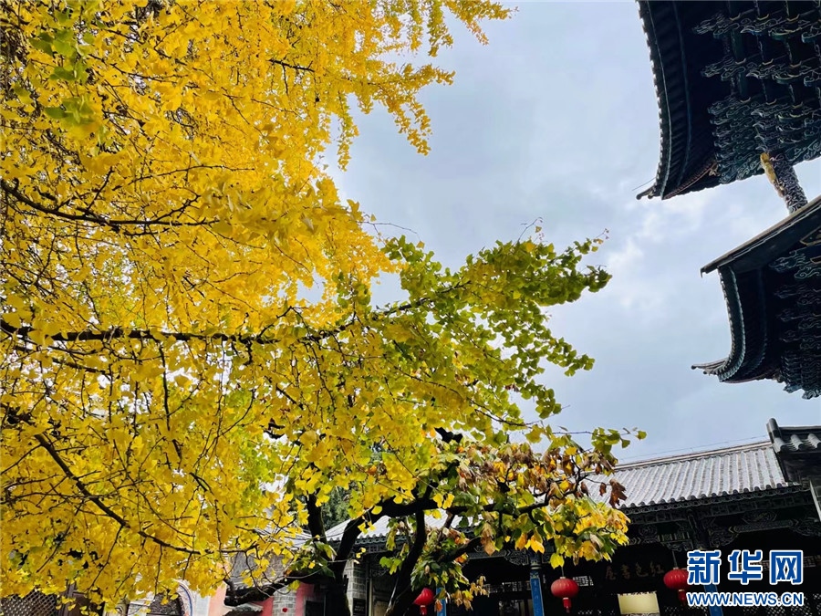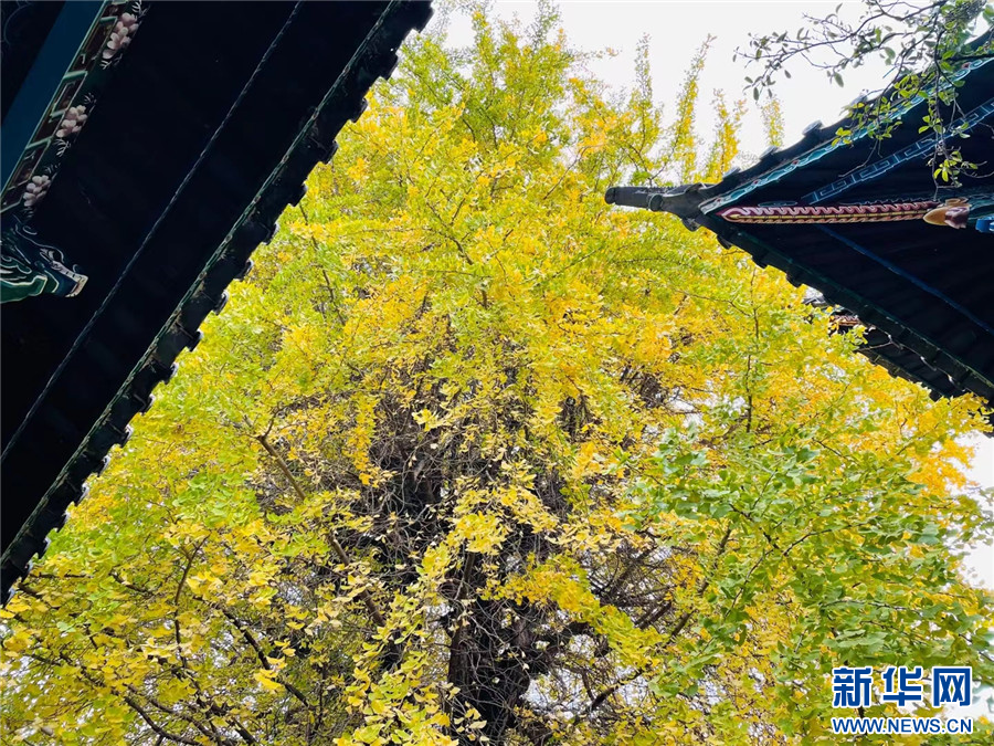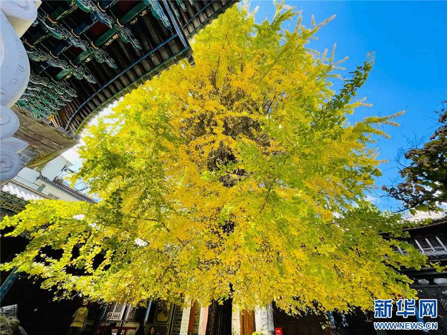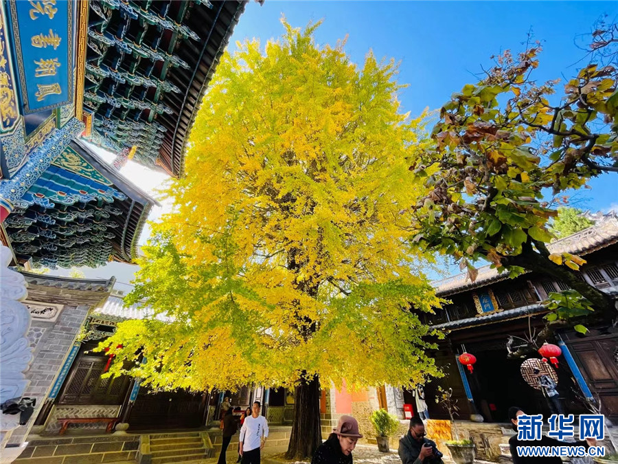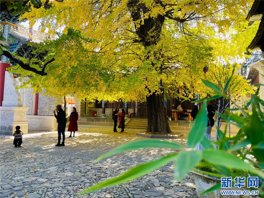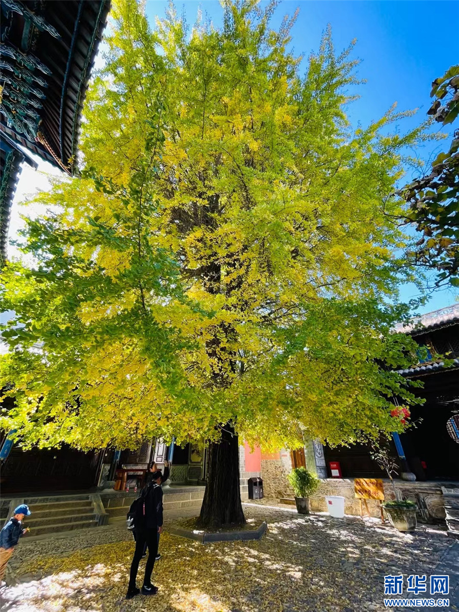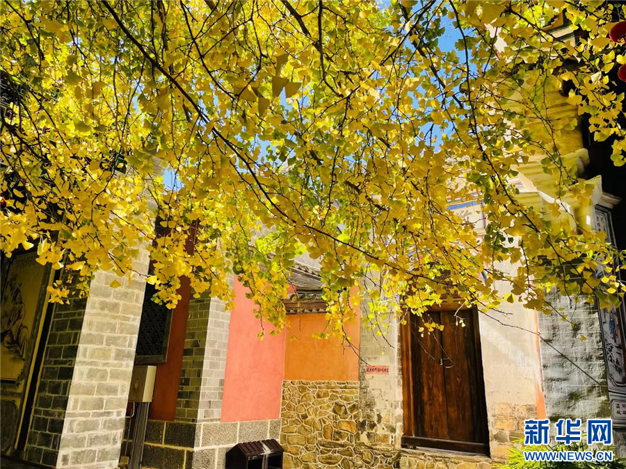 云南省大理白族自治州洱源县凤羽镇凤翔书院内的古银杏树迎来观赏期(11月17日摄)。新华网发(罗丹 摄)