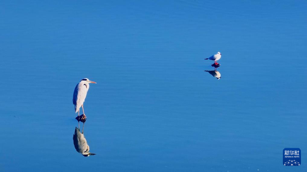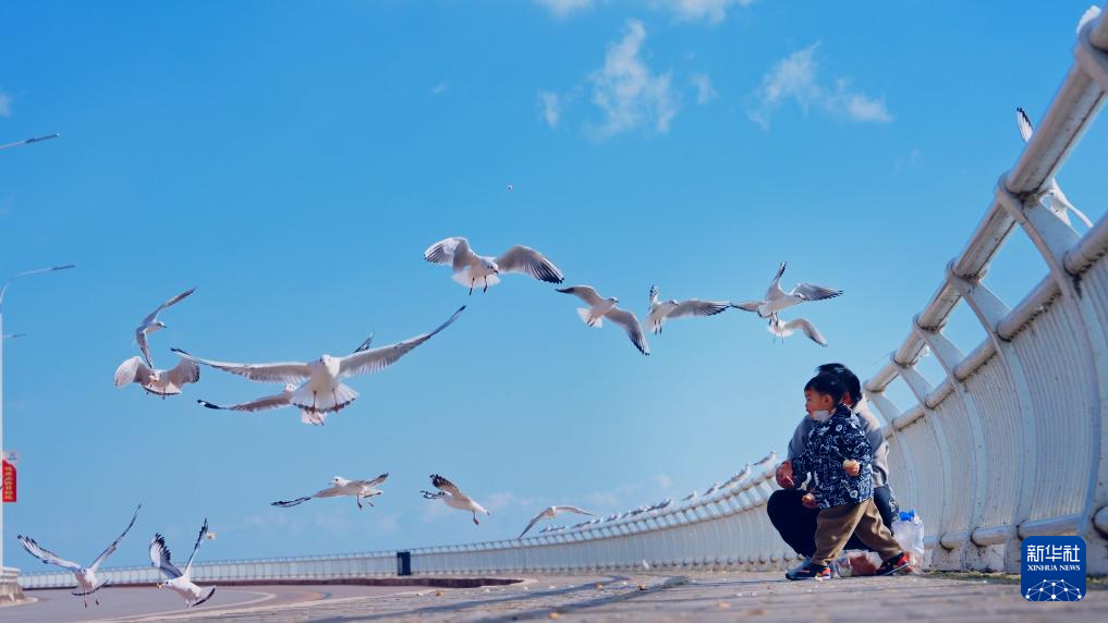 冬日滇池南岸的昆明市晋宁区,人与红嘴鸥和谐相处。