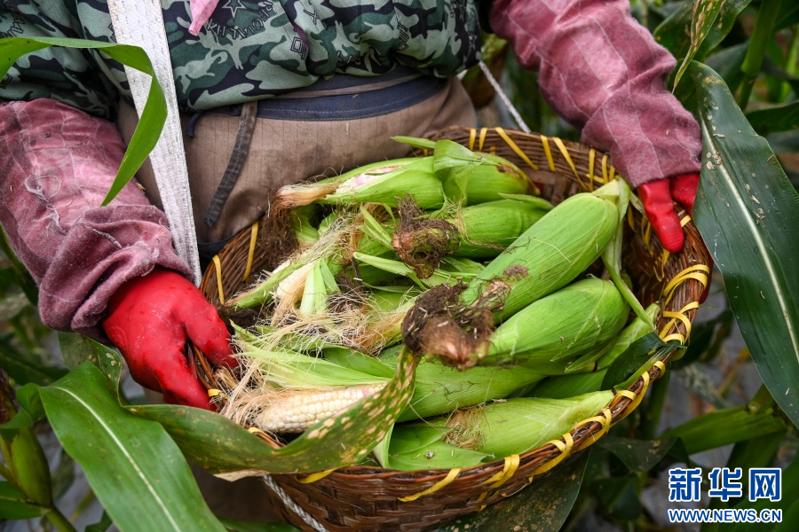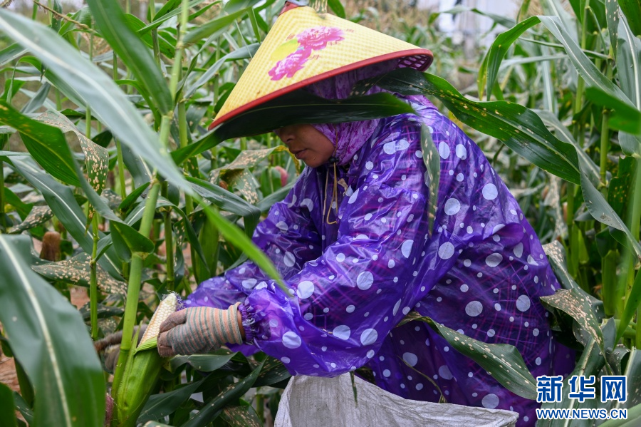 采摘糯玉米(11月25日摄)。新华网发(刘熙 摄)