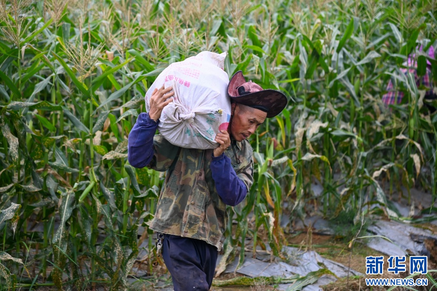 搬运采摘好的糯玉米(11月25日摄)。新华网发(刘熙 摄)