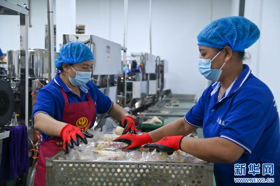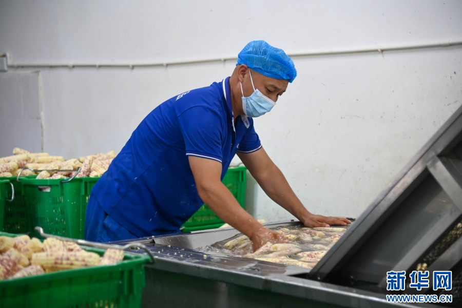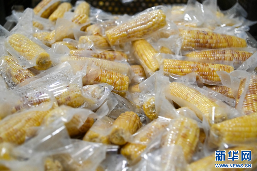 工人正在处理包装好的糯玉米(11月25日摄)。新华网发(刘熙 摄)