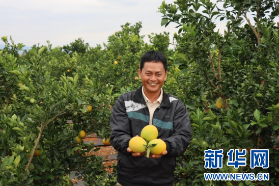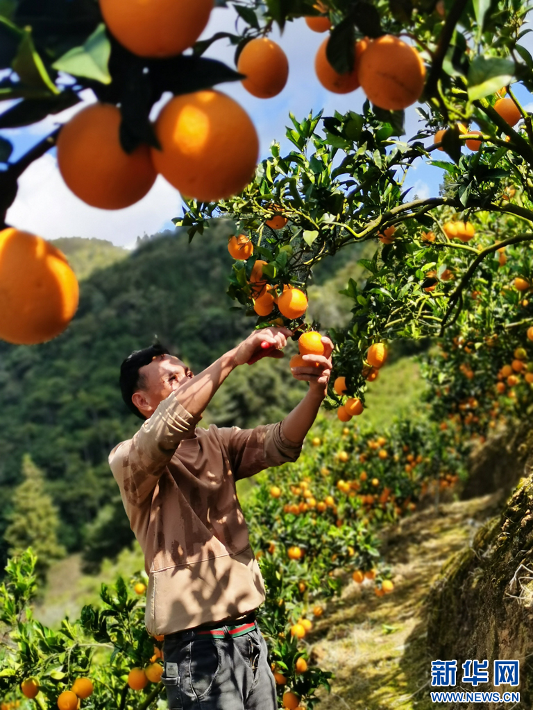 村民在采摘脐橙。新华网发(蒙自市融媒体中心 供图)