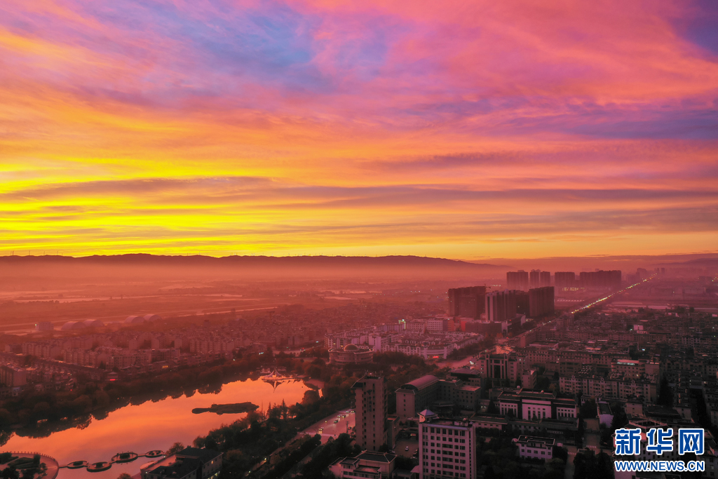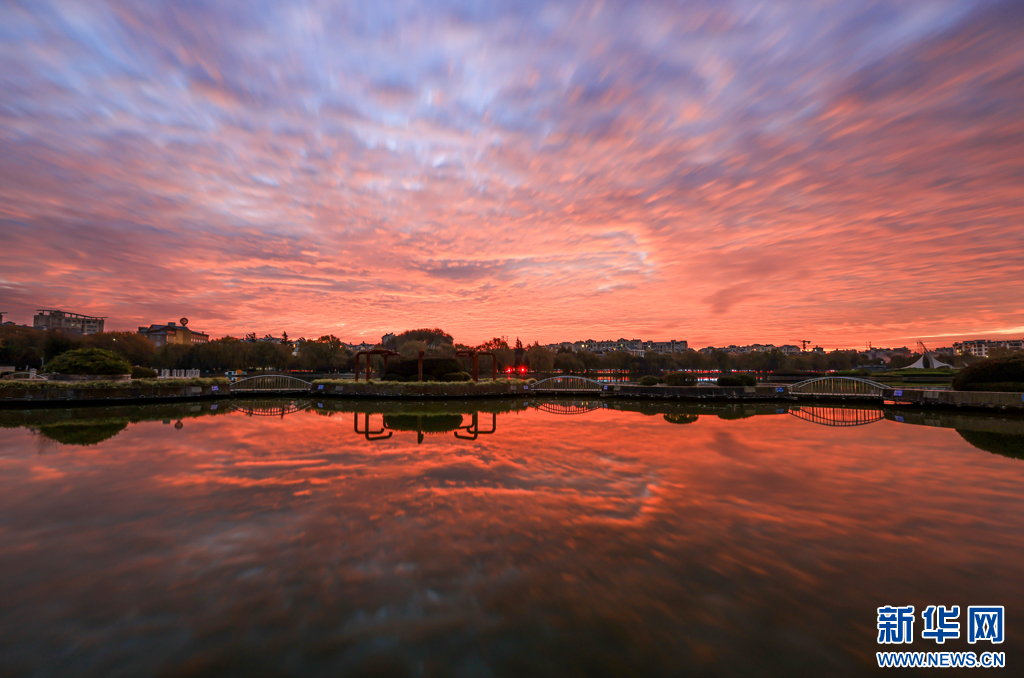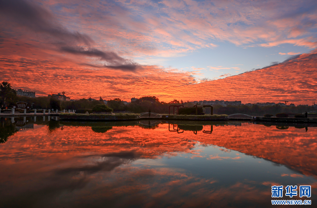 火红朝霞铺满天(12月7日摄)。新华网发(孙文来 摄)