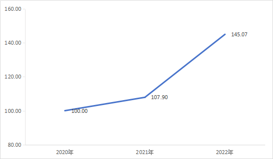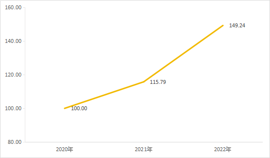 “新华·楚雄彝绣产业发展指数”市场化分指数运行结果显示,2022年,楚雄彝绣市场化指数达149.24点,基期以来复合增速22.16%,其中2022年同比增速28.89%,楚雄彝绣市场化进程进一步加速。