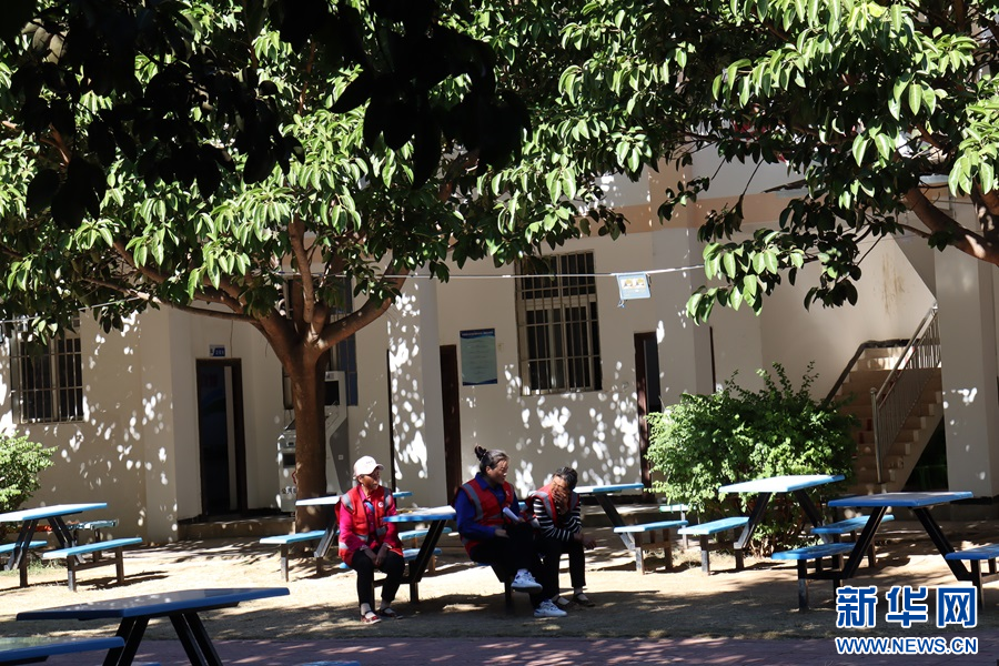 冬日的阳光下,40岁的左仁珍和工友们坐在查利么“幸福里”社区院子里,享受着舒适悠闲的午后时光。