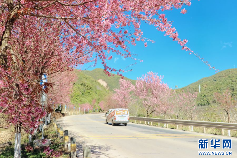 道路旁的樱花(12月19日摄)。新华网发(南华县委宣传部供图)