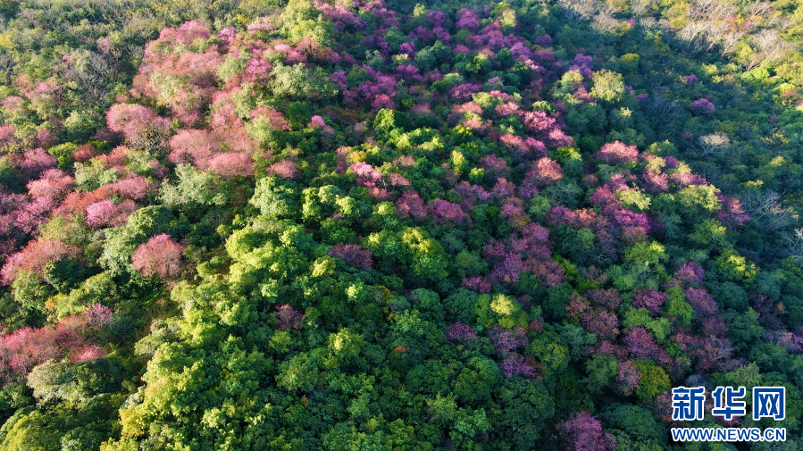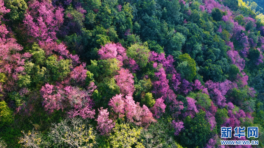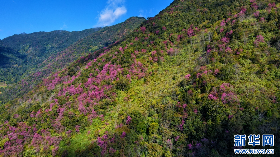 施甸县善洲林场东麓十万余株野樱花如期绽放(12月18日摄)。新华网发(施甸县融媒体中心供图)