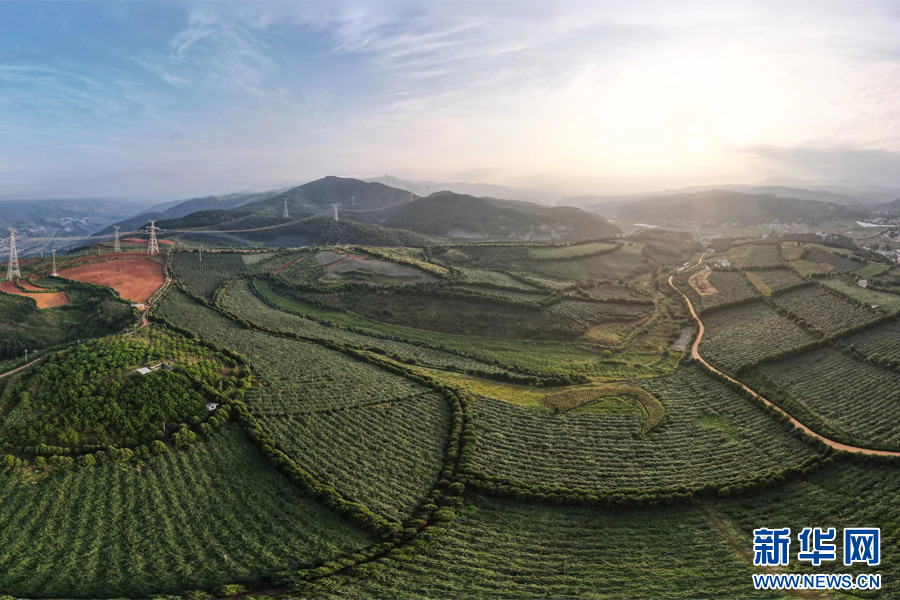 航拍寻甸县凤合镇猕猴桃产业基地(资料图)。新华网发(寻甸县融媒体中心供图)