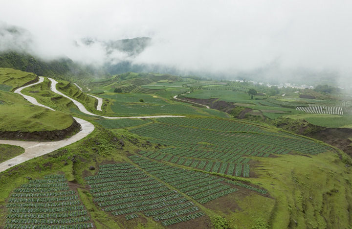 云南昭通市永善县伍寨彝族苗族乡的高山冷凉蔬菜基地(2022年5月28日摄)。新华社发(甘光涛 摄)