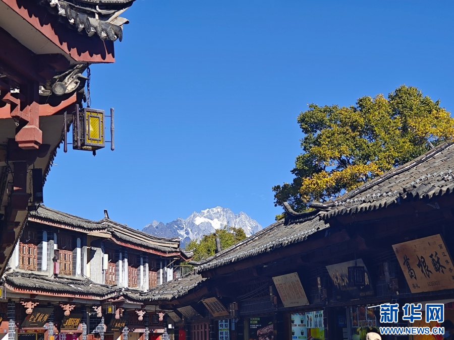 在丽江古城遥望玉龙雪山(2023年11月26日摄)。新华网发(和润仙 摄)