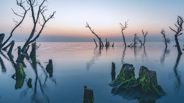 寂静的湖面映照绯红天空,流云让色彩飞扬,带来希望与活力,美好时光如约而至!