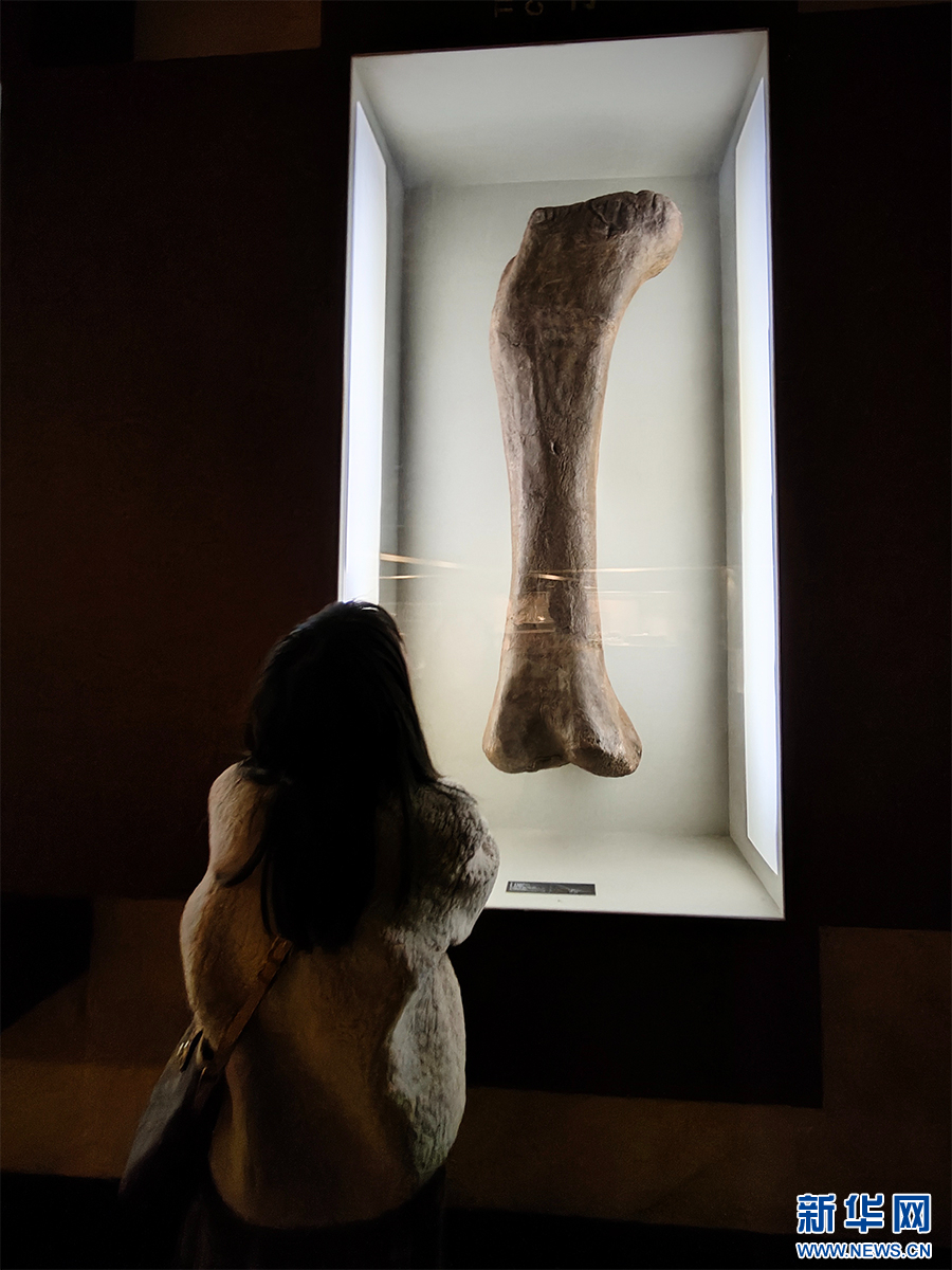 游客在参观姜驿元谋龙股骨。新华网发(徐华陵 摄)