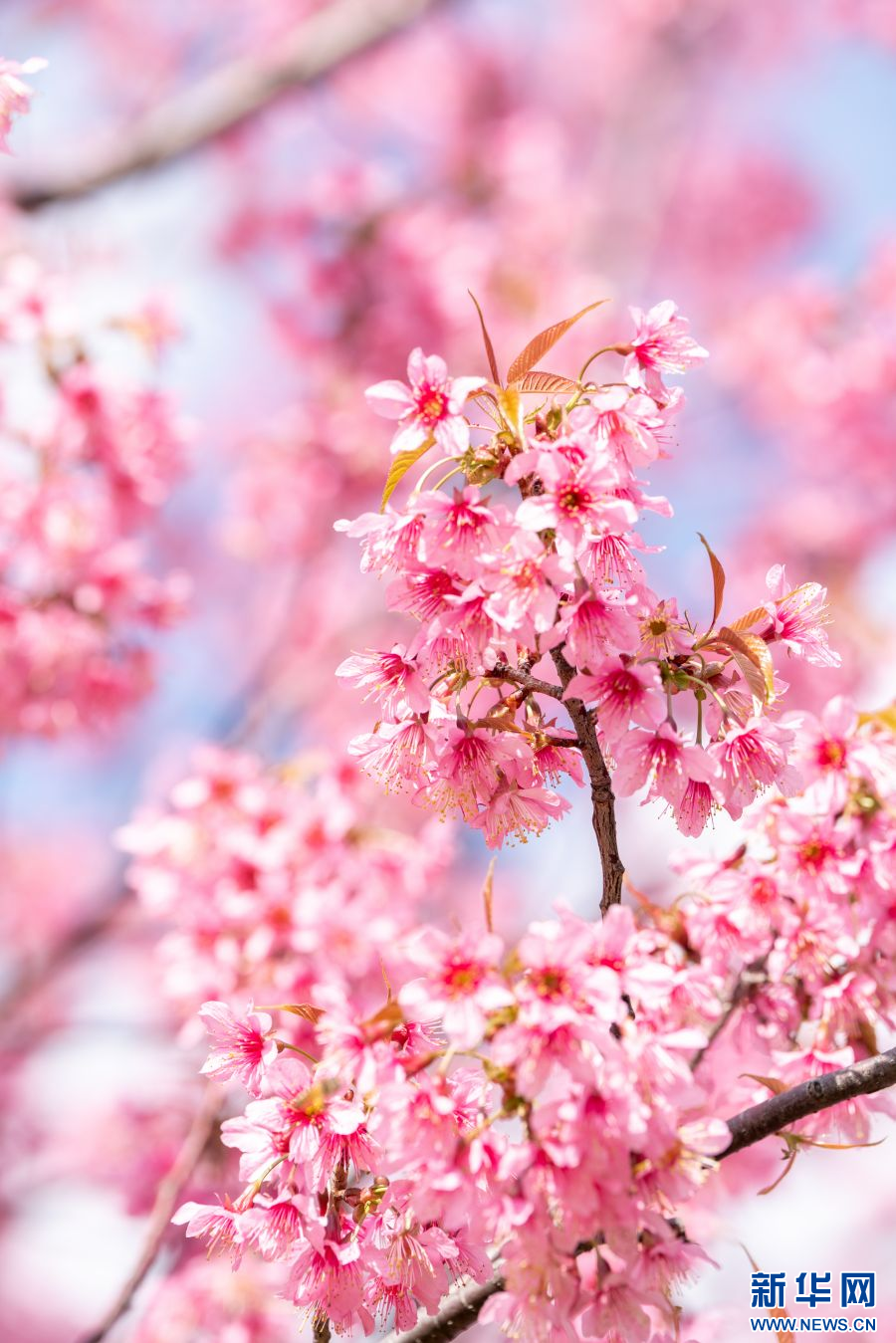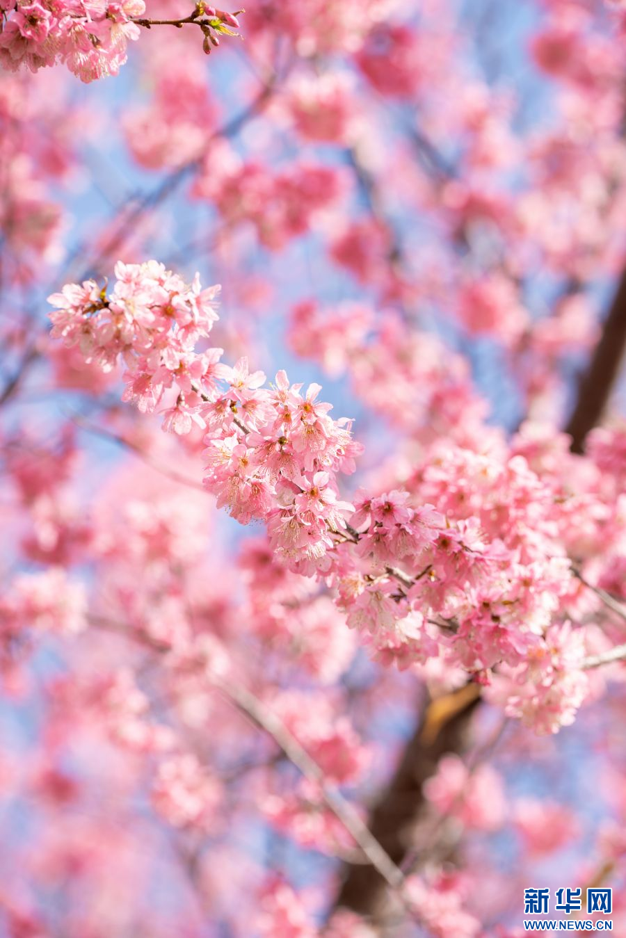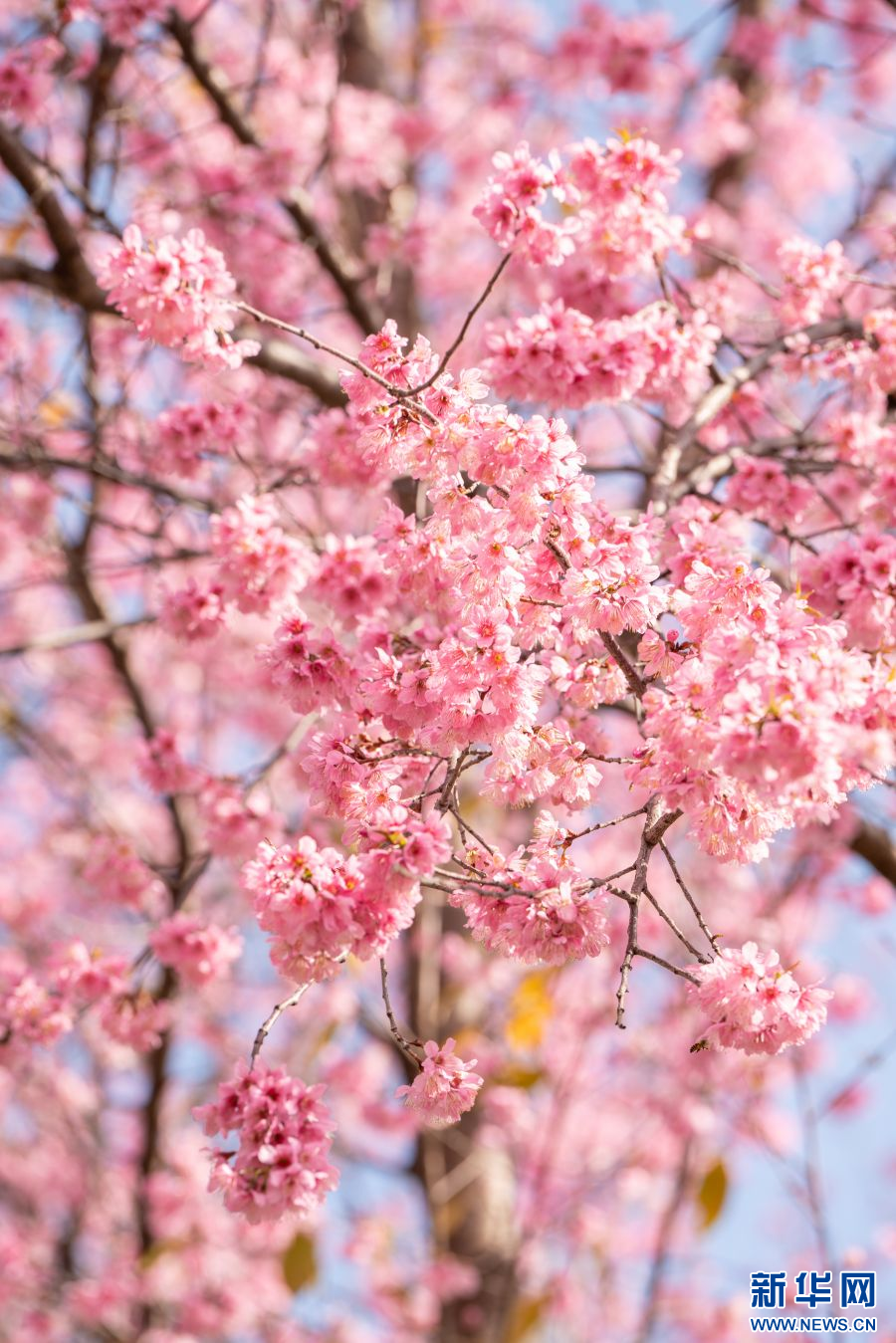在云南省红河哈尼族彝族自治州蒙自市,冬日暖阳下,樱花盛开,与碧蓝的天空交相辉映,美不胜收。(马秋菊 李星 杨子傲 佘卓瑾)