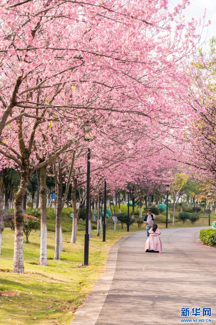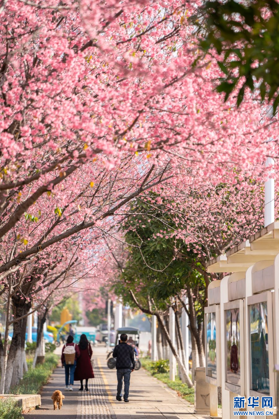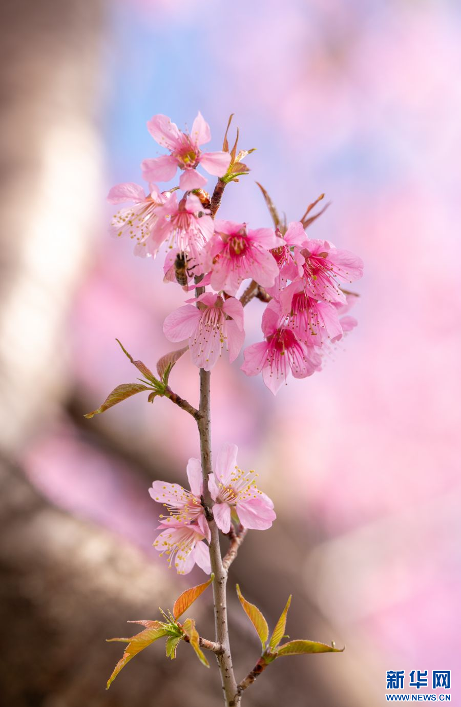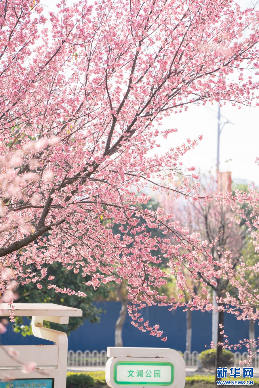 在云南省红河哈尼族彝族自治州蒙自市,冬日暖阳下,樱花盛开,与碧蓝的天空交相辉映,美不胜收。(马秋菊 李星 杨子傲 佘卓瑾)