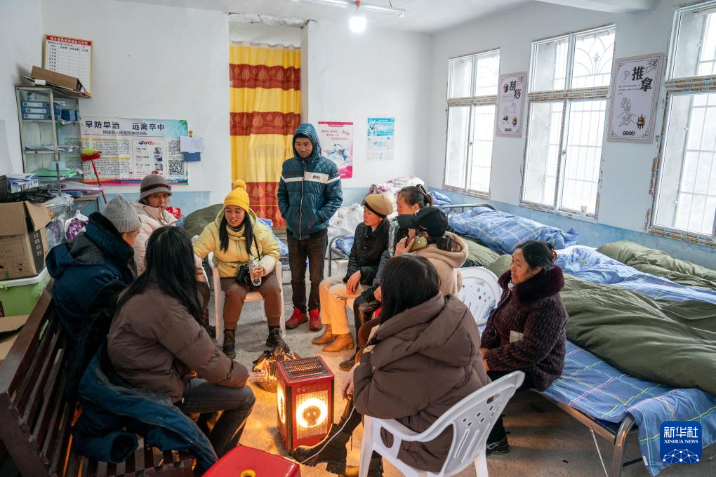 1月24日,受灾群众在镇雄县塘房镇凉水村和平小学老校区安置点休息。