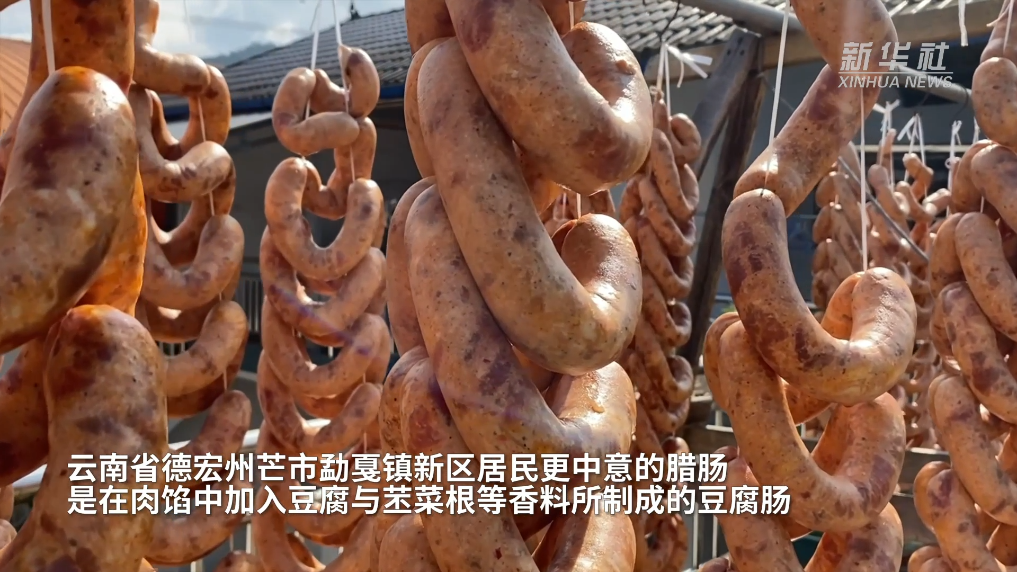 除常见的川味腊肠和广味腊肠外,在云南省德宏州芒市勐戛镇新区,当地居民更中意的腊肠是在肉馅中加入豆腐与苤菜根等香料所制成的豆腐肠。