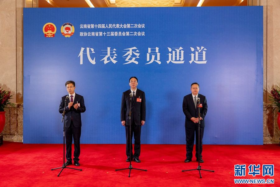 1月24日,云南省第十四届人民代表大会第二次会议举行第一场“代表通道”采访活动。新华网发(李浩 摄)