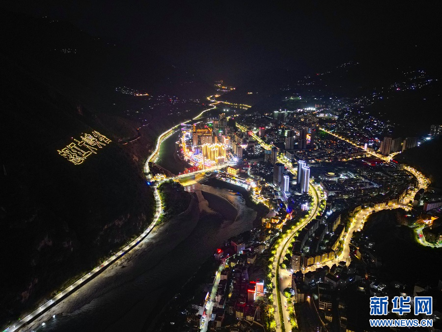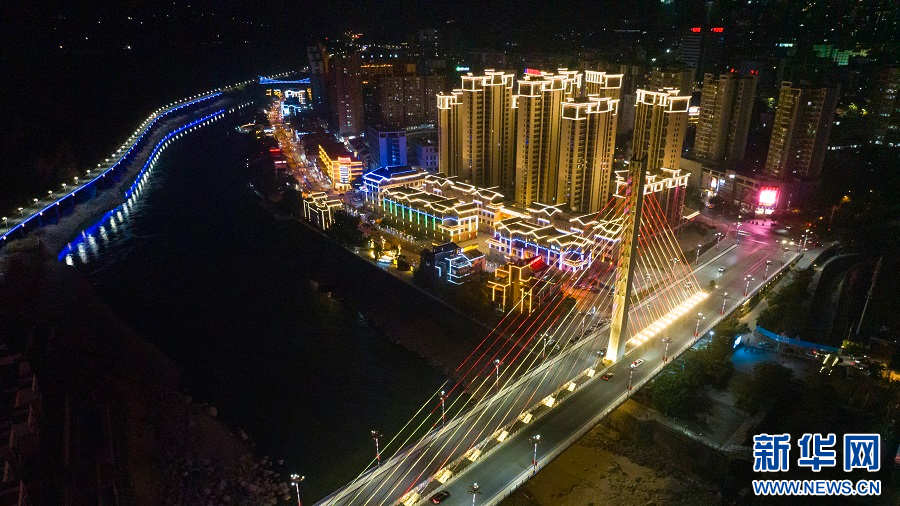 近日,摄影爱好者用无人机记录下云南省怒江傈僳族自治州泸水市主城区的冬日夜景。夜幕之下,各色闪亮的霓虹灯让整个城市流光溢彩。(完)(邵维岑 郭康 杨荣辉)
