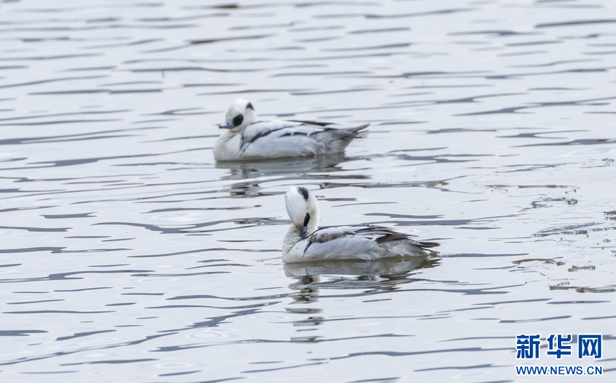 两只斑头秋沙鸭同框 (1月27日摄)。新华网发(朱边勇 摄)
