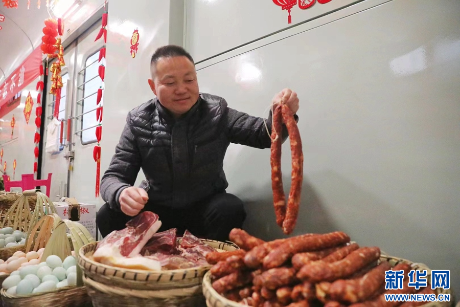2月2日,昆明至元谋西的“慢火车”上办起了年货街。新华网发(杨紫轩 摄)